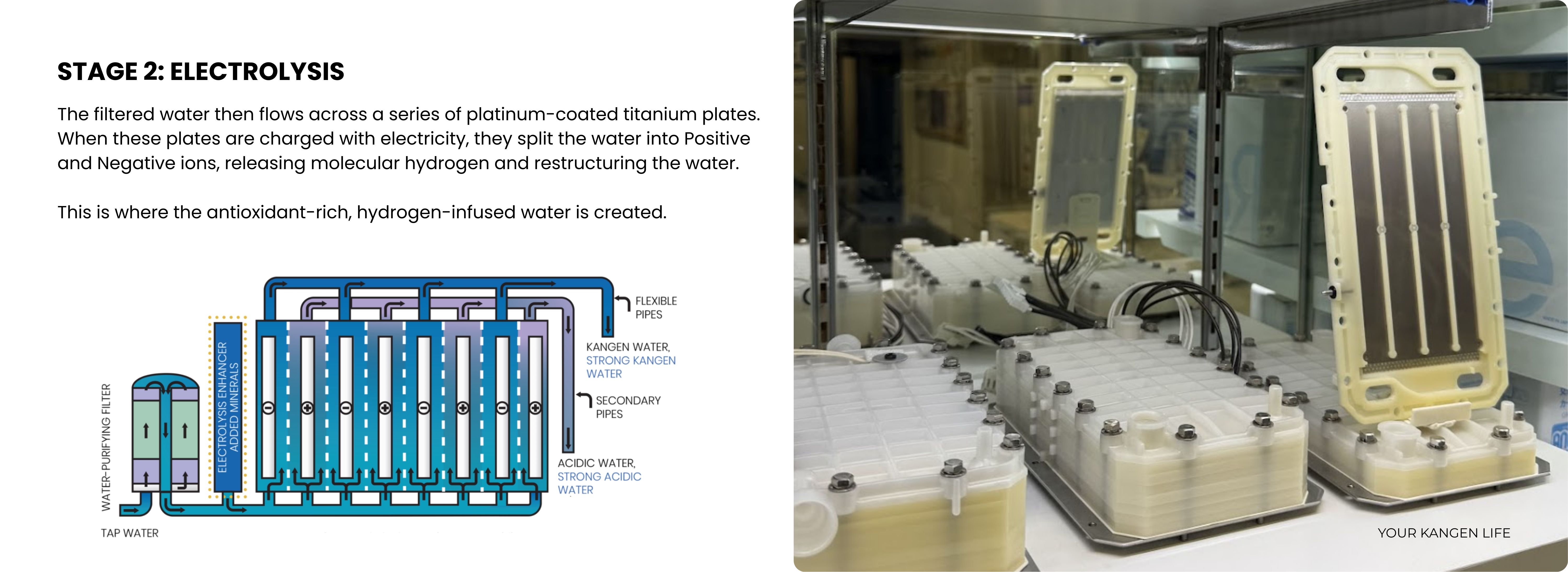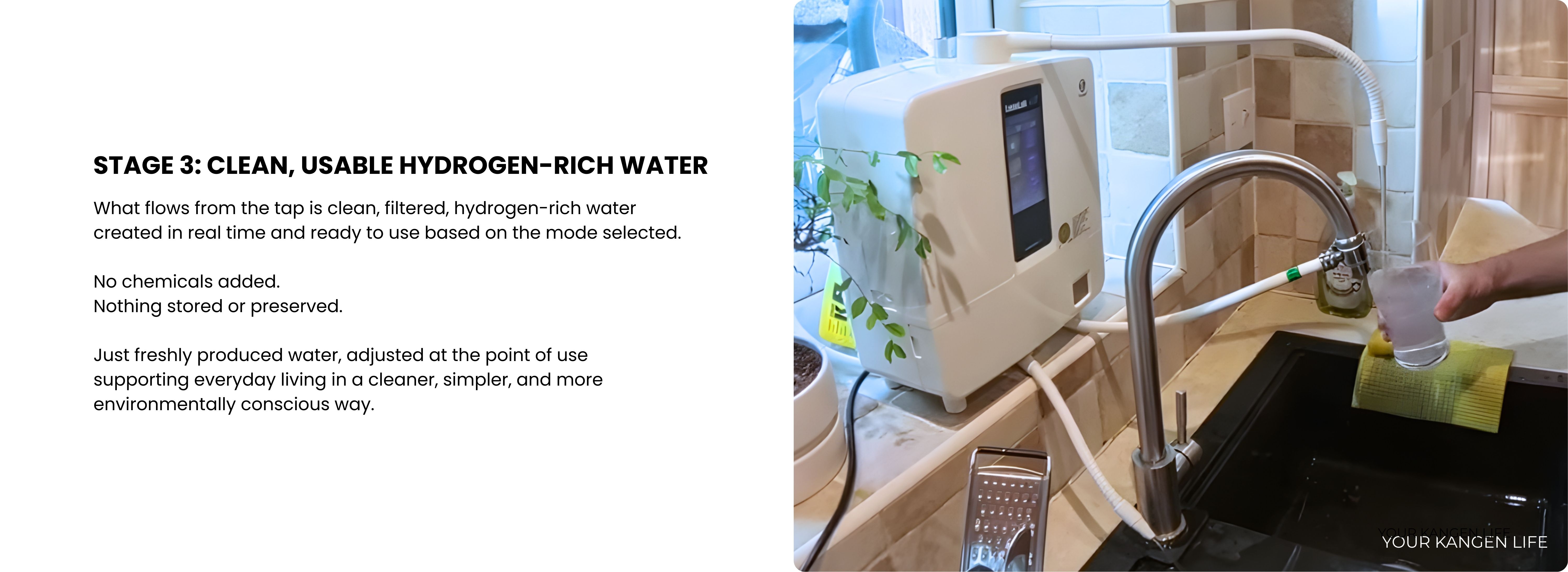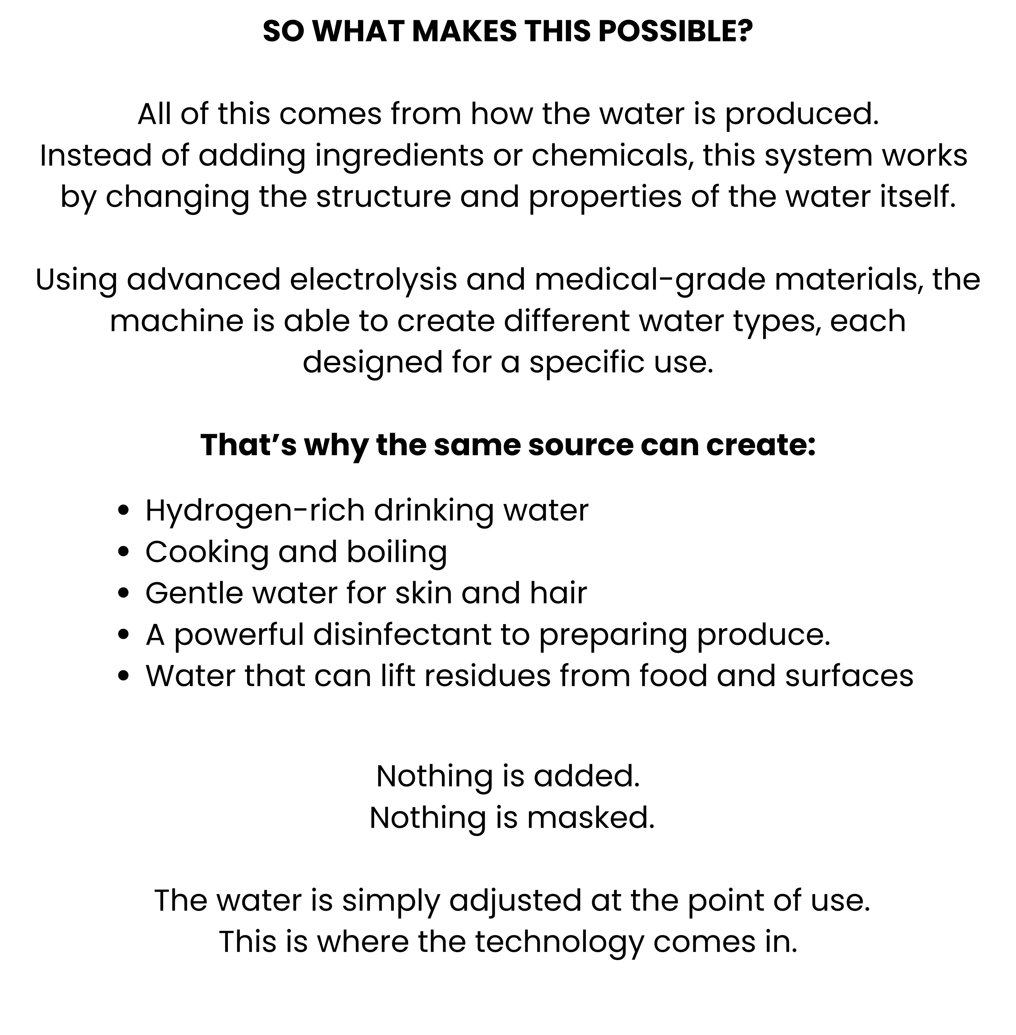The K8 Water Ioniser creates the water fresh, on demand, using electrolysis, so you’re drinking it while the hydrogen is still active. That’s why people feel the difference so quickly: it’s not about pH hype or the additives, it’s the presence of dissolved hydrogen right when you drink it.