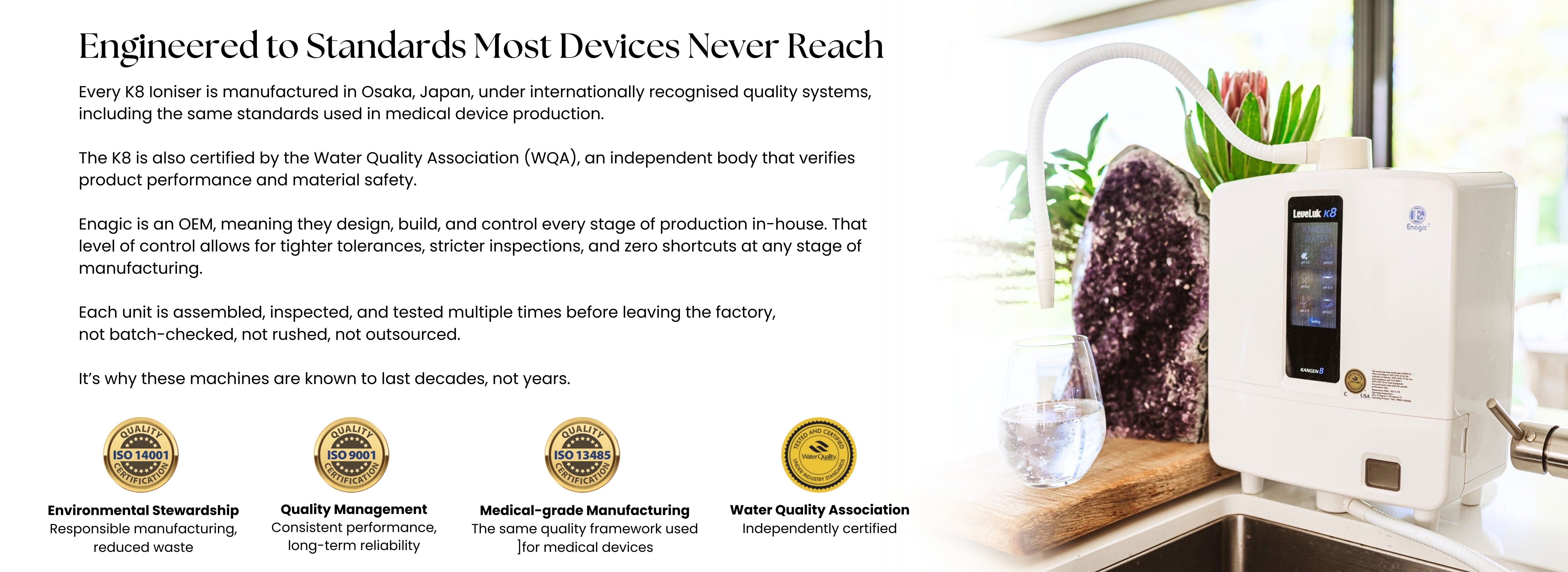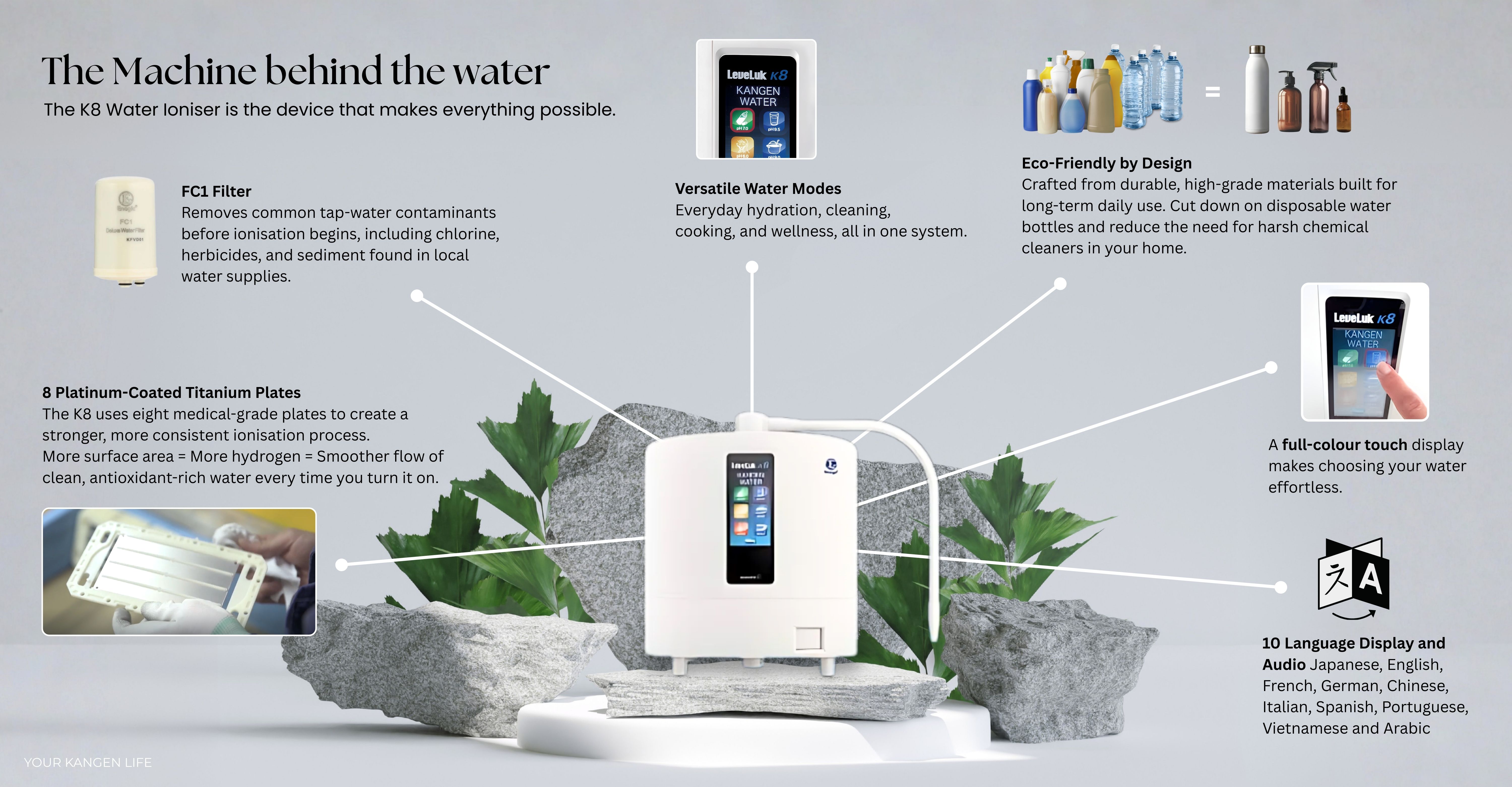This website is not intended to replace Enagic’s official website. Its purpose is to provide educational content, real-world context, and clarity around the K8 Water Ioniser and hydrogen-rich water.